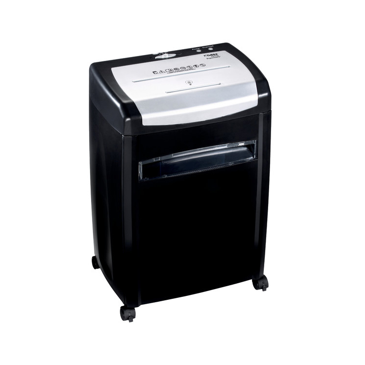Con avvio elettronico tramite fotocellula, funzione reverse. Indicatore ottico di sovraccarico con funzione di reverse automatica. Pratica finestra per verificare il livello di riempimento del cestino. Due distinte imboccature per distruggere carta o CD/DVD/carte di credito. Raccolta differenziata dei frammenti.